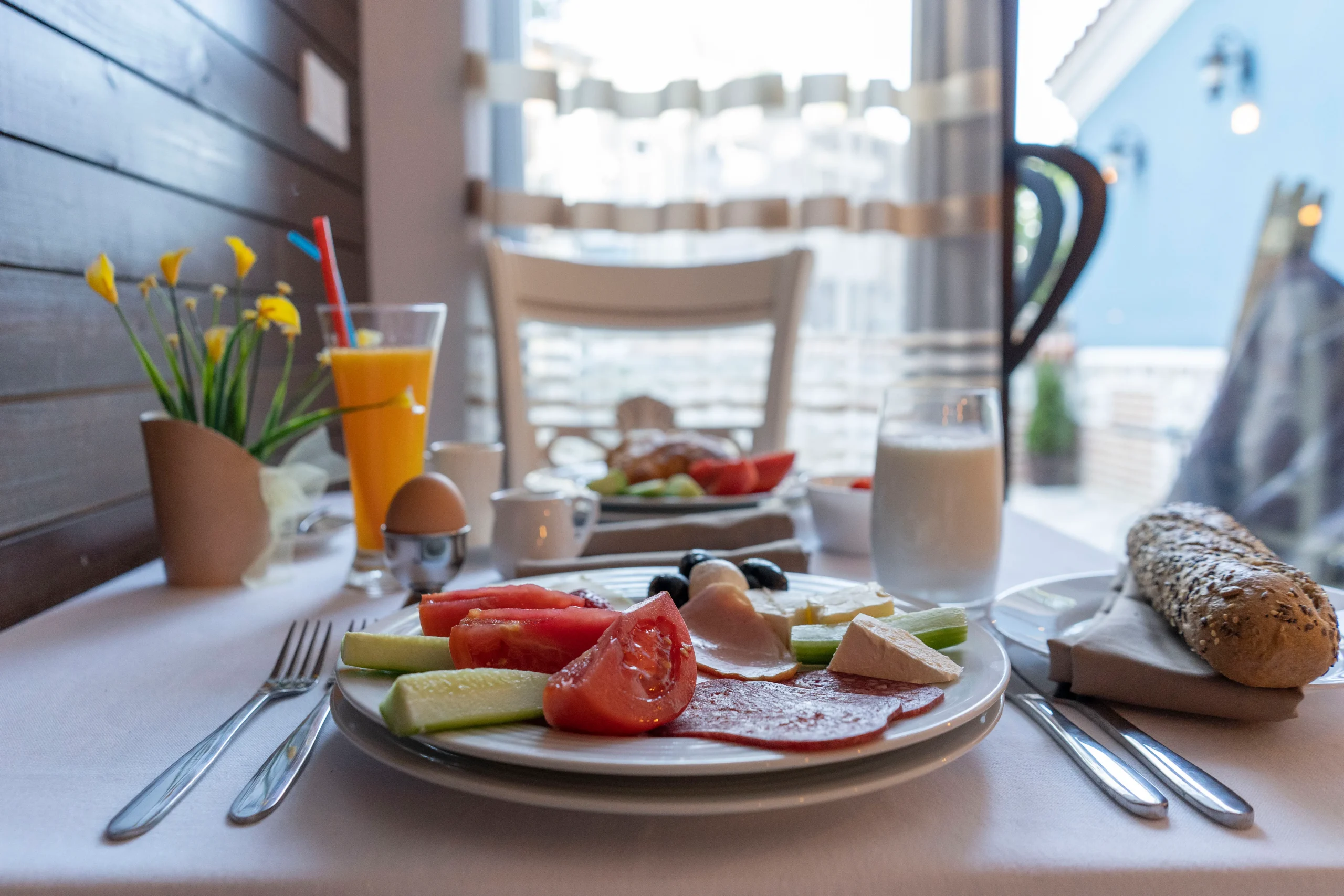 Добре дошли в ресторанта на “Семеен хотел Пулпудева”, където уютната атмосфера и спокойната градина създават идеалното място за започване на деня. Предлагаме ви уютен кът на открито, специално предназначен за закуска, където можете да се насладите на свежия въздух и красивата природа.